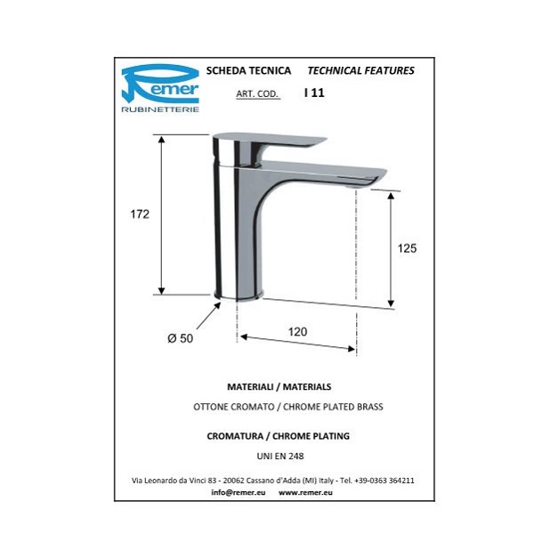 Remer Infiniti Змішувач вмивальник I11 без донного клапана