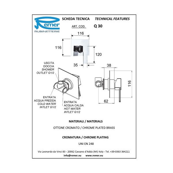 Remer Infiniti змішувач прихованного монтажу для душу I30