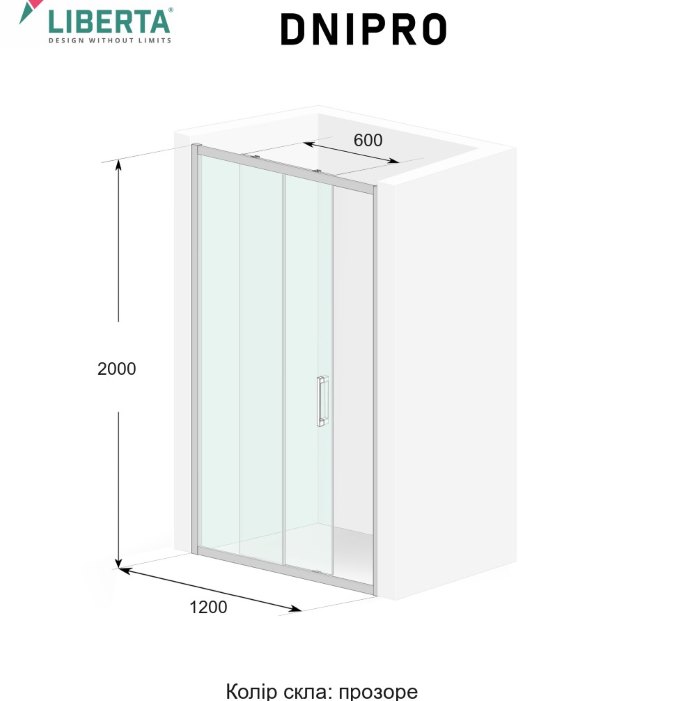 Liberta Dnipro Душові двері 1200*2000 хром, прозоре скло