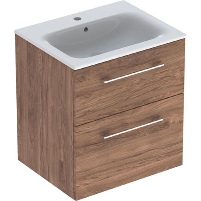 Geberit Selnova Square Комплект меблів для ванної кімнати: тумба під раков.60см з 2-ма шухлядами + раковина slim rim, темний горіх 501.238.00.1