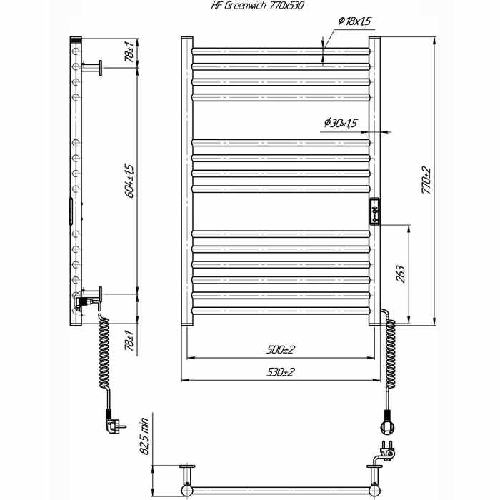 Mario Hygge Family HF Greenwich Рушникосушка ел.770х530 білий мат, в комплекті з прих.підкл