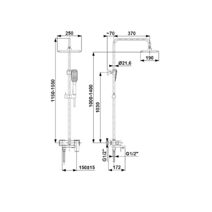 Душова система, душова штанга, верхній душ, душовий шланг, душова лійка