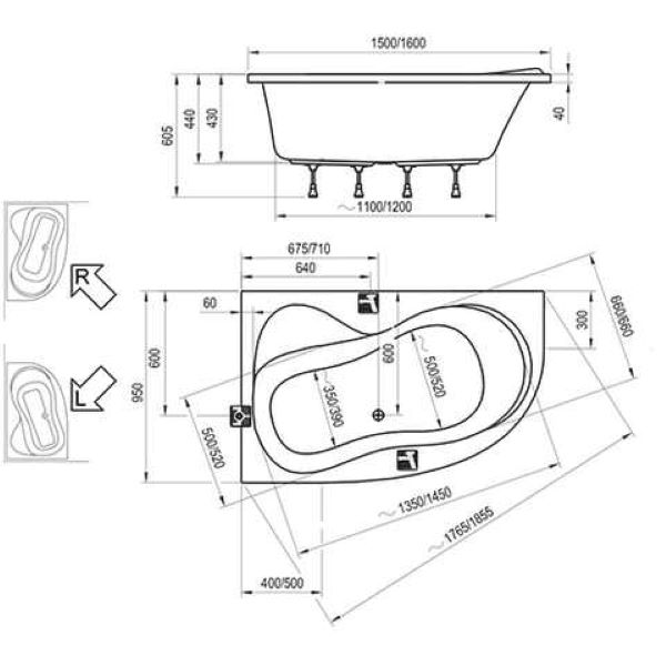 1. Ravak Rosa 95. Розміри 160*95 L, Design Storz