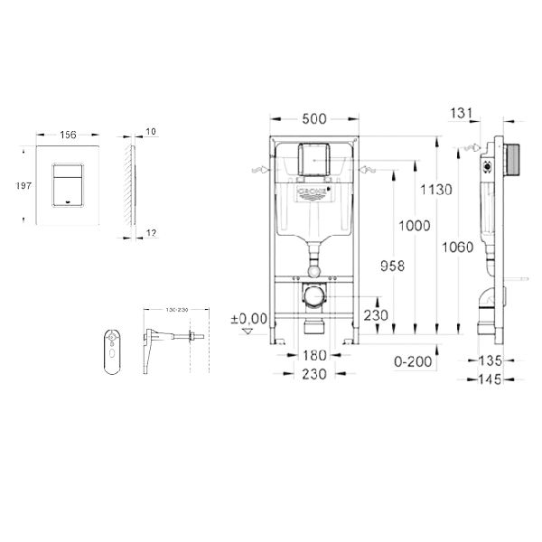 Grohe Інсталяція для підвісного унітаза 113 см Rapid SL 3 в 1 з квадр.кнопкою хром 38772001
