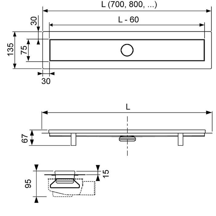 TECE linus Канал дренажний в зборі, вставка 2в1, мембранний г/затвор, 800мм