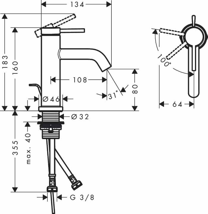 висота виливу: 80 мм