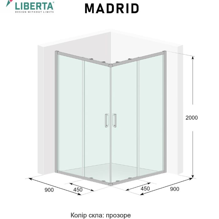 Liberta Magrid душова кабіна кутова 90*90*2000 хром, прозоре скло
