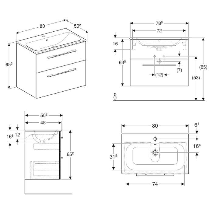 Geberit Тумба з умивальником Geberit Smyle Square, з двома ящиками: 75х48 см, горіх темний