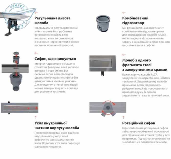 Сифон для водовідвідного жолоба APZ-S9 Гідрозатвор - комбінований SMART Регульовані ніжки 4 шт.