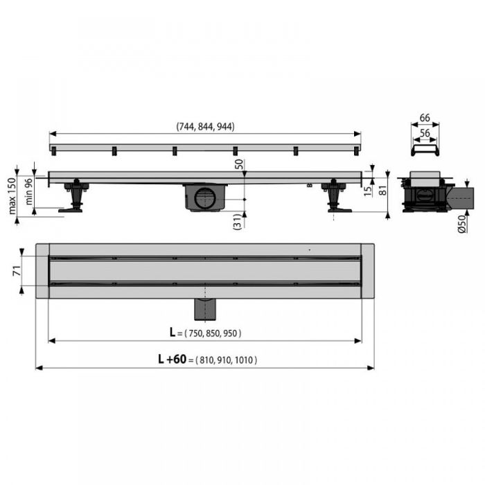 Трап для душу Alcaplast APZ13-DOUBLE9 з нержавіючою решіткою 850 мм