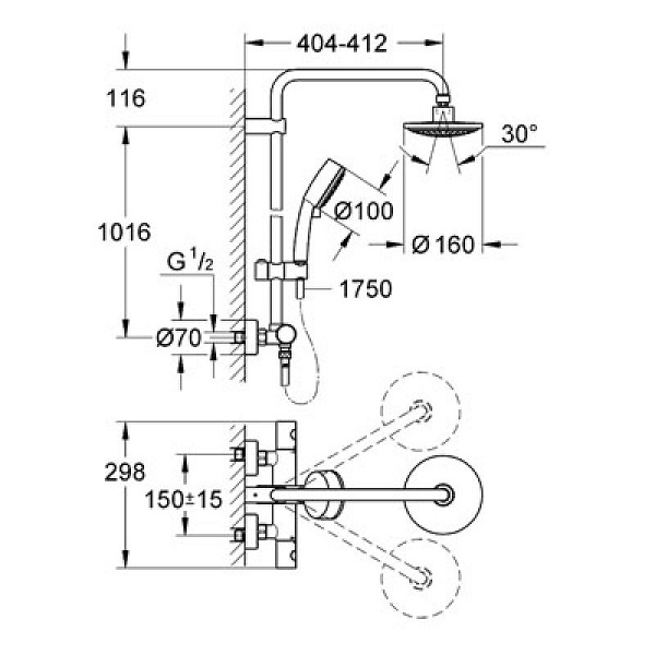 Grohe Душова система Tempesta Cosmopolitan System 160 з термостатом 27922000