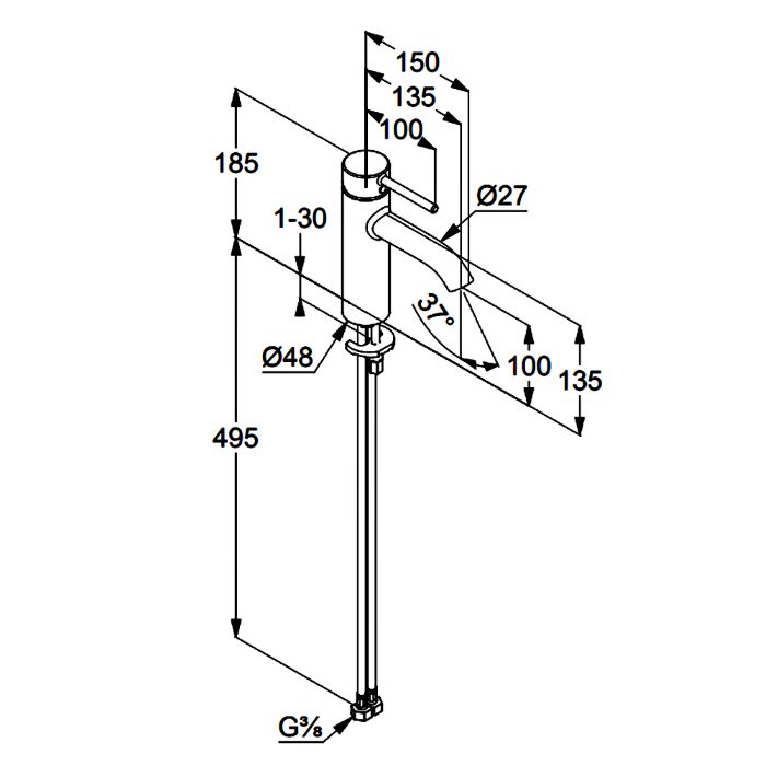 одноважільний змішувач на умивальник 100 DN 15 хром