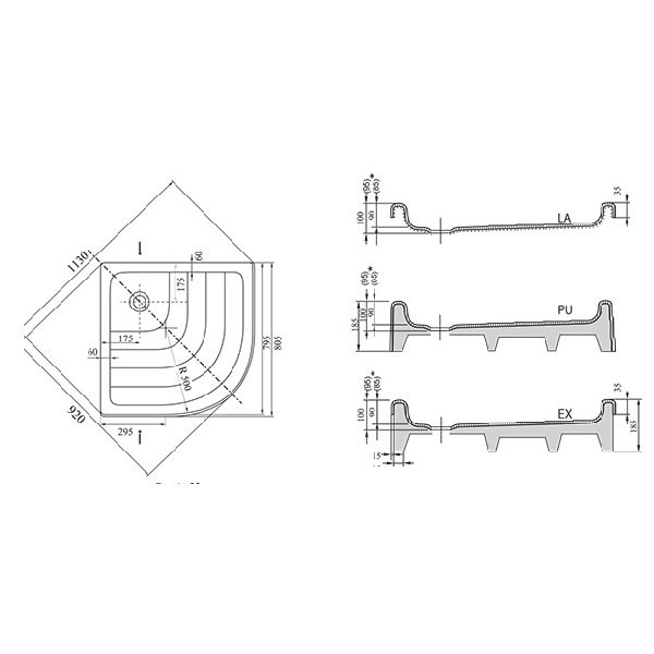 Піддон Ronda підходить для душових кабін SKCP4, SKKP6, BLCP4, PSKK3, SMSKK4, BSSK3, BSKK4.