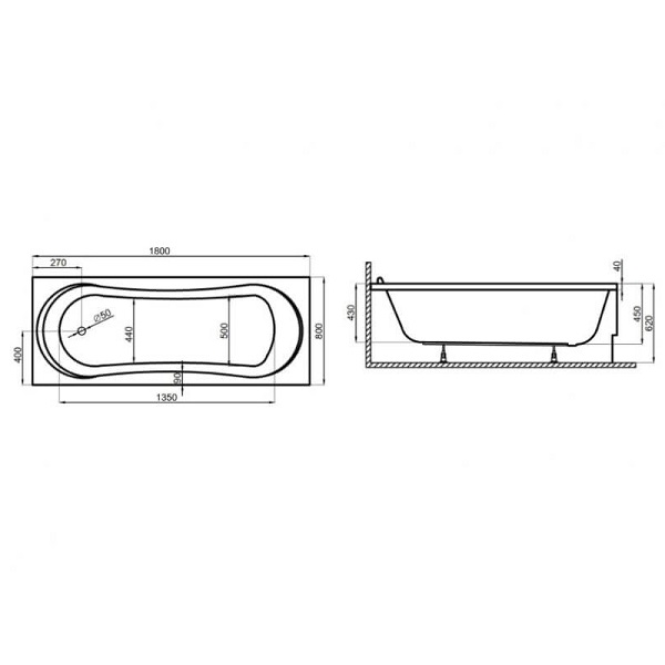Ванна має стильну форму, глибока та зручна. Білий колір акрилу. Товщина акрилу 5 мм.