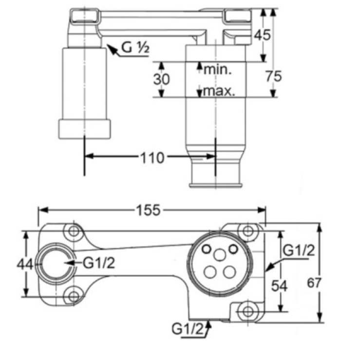 глибина монтажу 45-75 мм