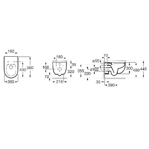 Roca Унітаз підвісний Meridian Rimless з сидінням Slim slow, Іспанія
